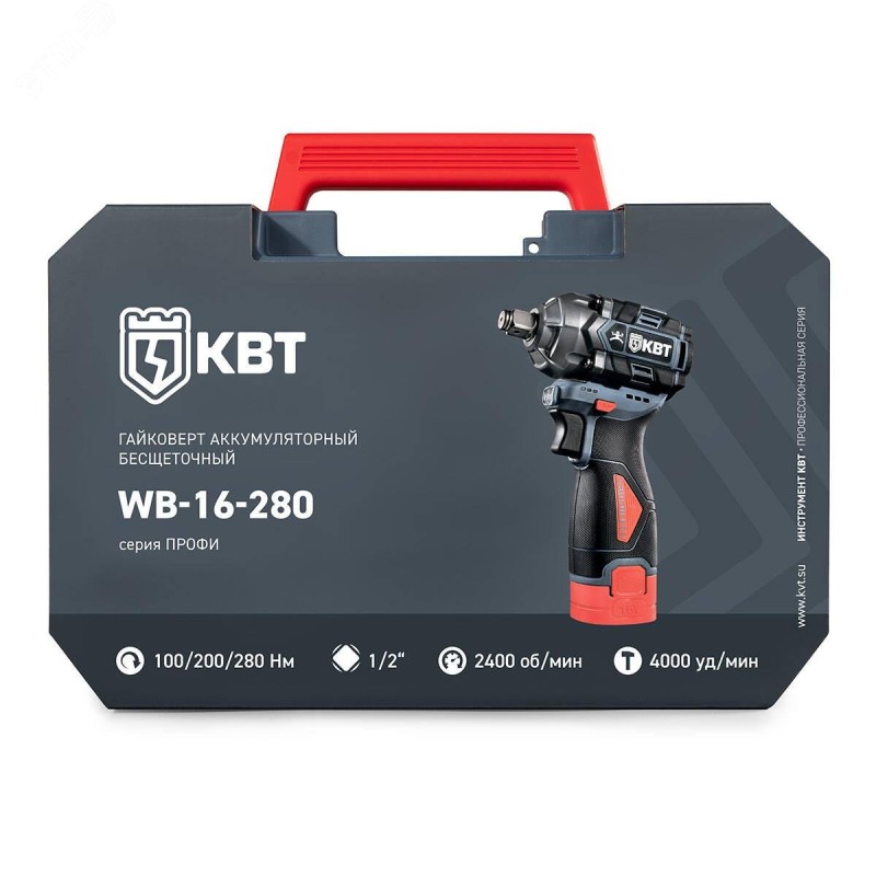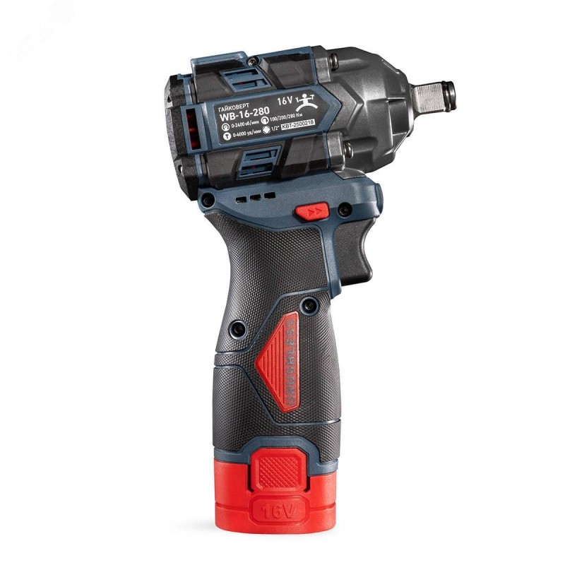 - Комплектация:бесщеточный ударный гайковерт WB-16-280|аккумуляторные батареи – Li-Ion, 16 В/2ач – 2 шт|зарядное устройство от сети 230 В|прочный пластиковый кейс|паспорт|картонная коробка