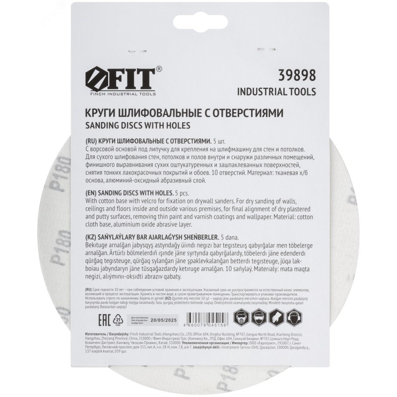На тканевой основе с липучкой, с 10 отверстиями. Используется со шлифмашиной для стен и потолков. Для сухого шлифования стен, потолков и полов, финишного выравнивания сухих оштукатуренных и зашпаклеванных поверхностей, снятия тонких лакокрасочных покрытий и обоев. Абразивный слой монокристаллического оксида алюминия обладает повышенной твердостью и стойкостью к истиранию. Система крепления ''велкро'' обеспечивает быстрый съем и установку кругов. Тканевая х/б основа обладает высокой прочностью.