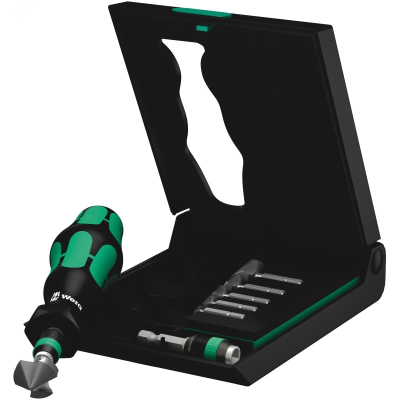 - Преимущества:Идеально для ремонтных и сервисных работ на выезде|Быстрая и простая смена насадки с выбором из сверла, зенкера или отвёртки|С приводом 1/4'' , подходит для шуруповрета|Для зачистки, снятия фасок и зенкерования|В практичном и прочном футляре из пластика