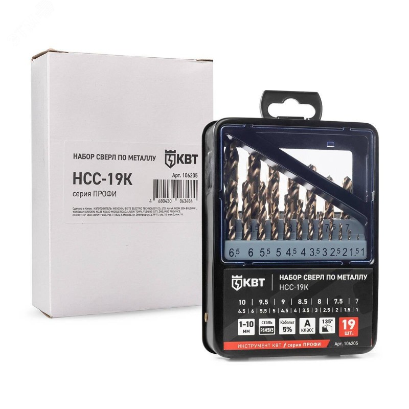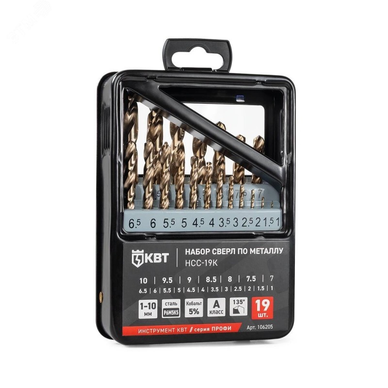 - Комплектация:набор сверл по металлу (1-10 мм) – 19 шт