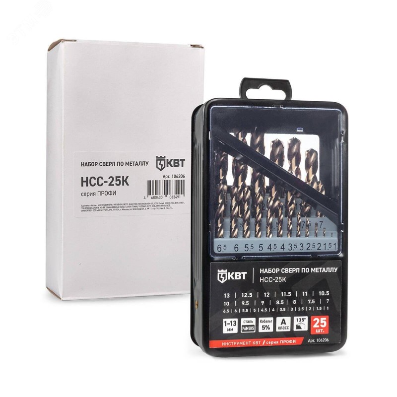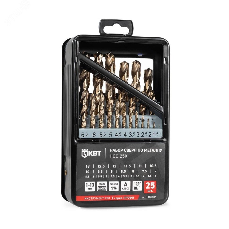 - Комплектация:набор сверл по металлу (1.5-13 мм) – 25 шт