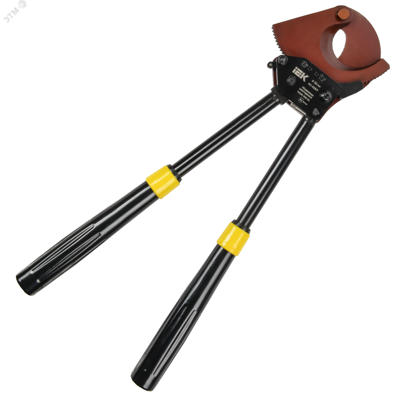 Ножницы секторные НС-52ВЛ IEK для резки стального троса диаметром до 18мм, провода АС и АСК максимальным диаметром до 52 мм. Подходит для: провода АС, АСК, СИП-3 диаметром до 52 мм (1440мм2), стальных канатов 1х7 диаметром до 12 мм, 1х19, 1х37 диаметром до 16 мм, кабелей с проволочной броней диаметром до 16 мм, прутков из низкоуглеродистой стали диаметром до 16 мм, труба из нержавеющей стали диаметром до 48мм.