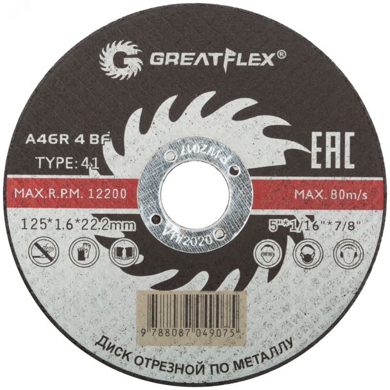 Отрезной диск по металлу Greatflex класса ''Мастер'' предназначен для разрезания различных сталей и сплавов в рамках бытового использования. Диски произведены с использованием технологий дисков CUTOP, что обеспечивает высокий КПД и низкую степень истираемости. В качестве абразива при производстве дисков используется корунд. Двойной слой армированной сетки продлевает срок службы диска.