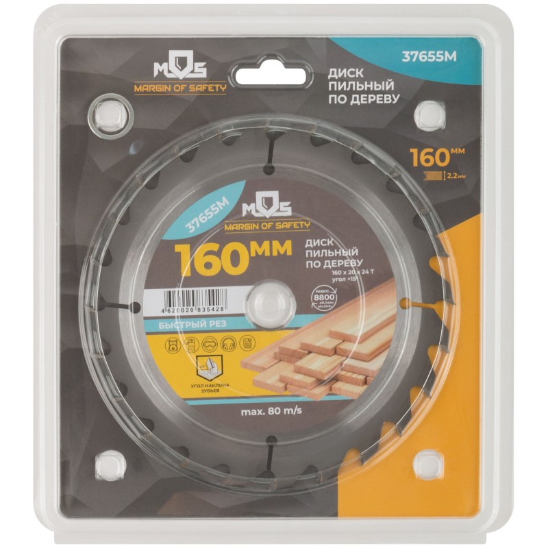 Диск пильный для циркулярных пил по дереву 160x20x24T + кольцо 20/16 мм