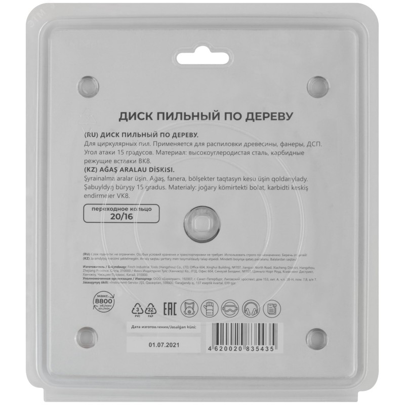 По дереву. Зубья из твердого сплава ВК8 (карбид вольфрама). Корпус из легированной высокоуглеродистой стали. Угол атаки +15 градусов. Упаковка -блистер.