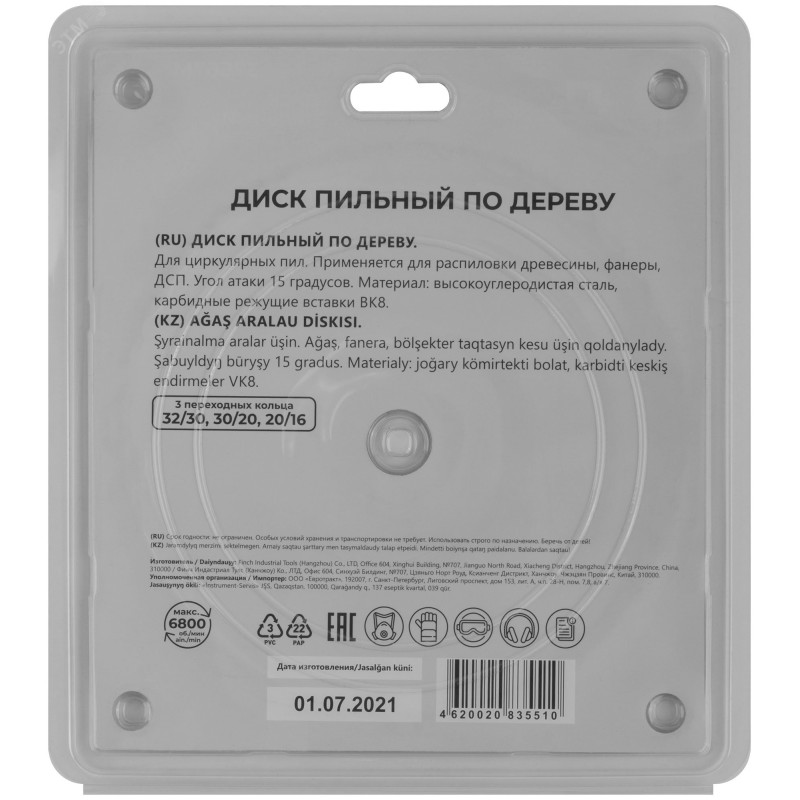 По дереву. Зубья из твердого сплава ВК8 (карбид вольфрама). Корпус из легированной высокоуглеродистой стали. Угол атаки +15 градусов. Упаковка -блистер.