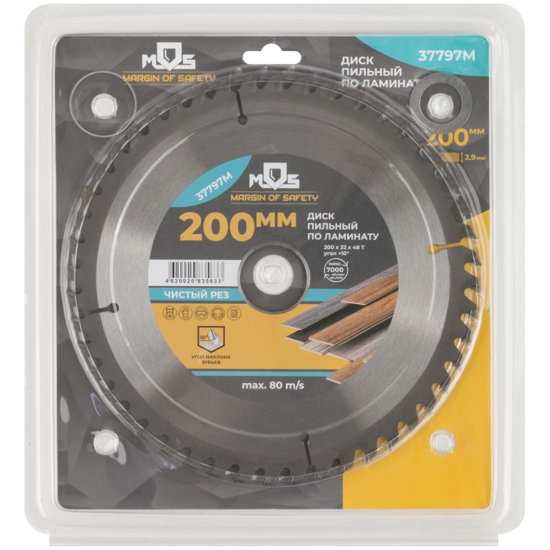 Диск пильный для циркулярных пил по ламинату 200x32x48T + 2 кольца 32/30 и 30/20 мм