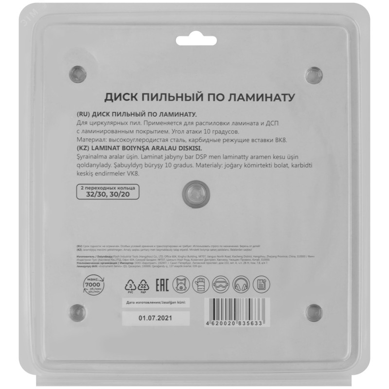 По ламинату. Зубья из твердого сплава ВК8 (карбид вольфрама). Корпус из легированной высокоуглеродистой стали. Угол атаки +10 градусов. Упаковка - блистер.