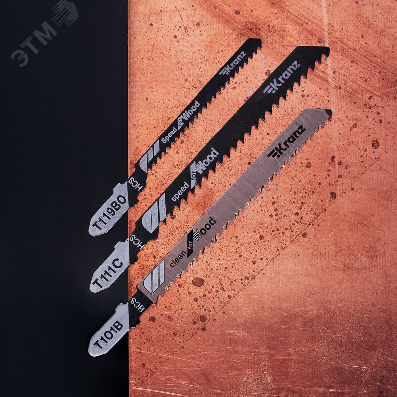 Набор полотен для электролобзика KRANZ с улучшенной заточкой зубьев предназначен для работ по дереву, металлу и оргстеклу. Полотно отлично подходит для всех марок электролобзиков с креплением для Т-образного хвостовика и надежно фиксируется в патроне. Выполнено из высокоуглеродистой стали. Улучшенная закалка токами высокой частоты увеличивает твердость зубьев и обеспечивает высокий ресурс.Тип распила чистый/быстрый/фигурный грубый. Толщина материала для распила 4-30/5-60/4-30 мм.