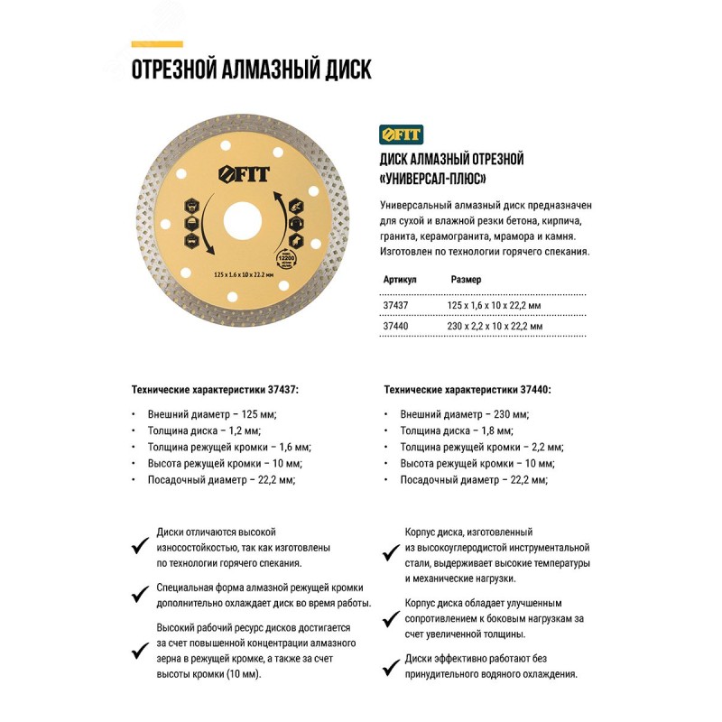 - Преимущества:Диск обладает универсальностью применения с возможностью работы без принудительного охлаждения|Технология горячего спекания и повышенная концентрация алмазов повышают прочность диска и его износостойкость|Х-образная режущая кромка обеспечивает высокую скорость реза, эффективный пылеотвод и охлаждение во время работы|Высокая режущая кромка способствует увеличенному ресурсу и минимизации бокового трения