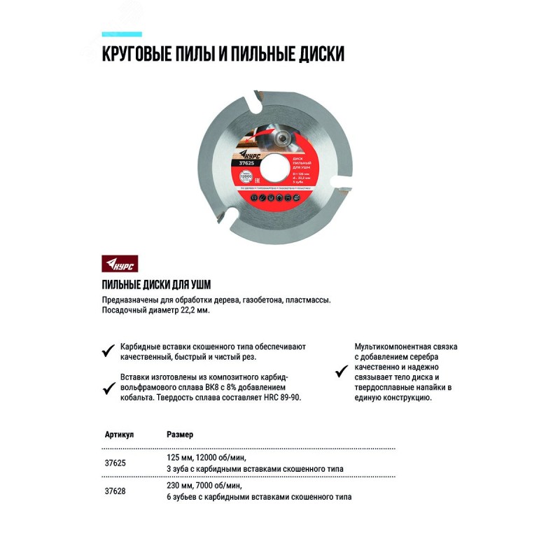 - Преимущества:Диски проходят процесс закалки с целью улучшения геометрии, уменьшения нагрева при длительных работах, а также для повышения износостойкости|Пазы в корпусе диска обеспечивают эффективное охлаждение и отвод стружки во время работы|Утолщенный корпус предотвращает деформацию во время работы|Серебро в составе припоя увеличивает прочность и износостойкость фиксации зубьев|Зубья изготовлены из композитного карбид-вольфрамового сплава ВК8, имеющего высокую твердость и прочность|Специальная заточка зубьев обеспечивает безопасность работы|Специальная форма диска препятствует застреванию, предотвращает рывки и заклинивание во время работы