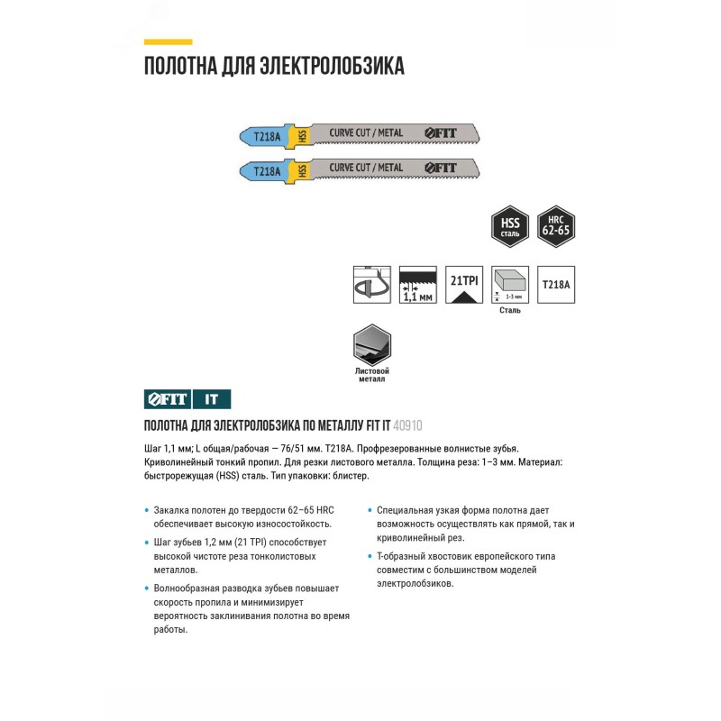 - Преимущества:Закалка полотен до твердости 62-65 hrc обеспечивает высокую износостойкость|Шаг зубьев 1,1 мм (21 tpi) способствует высокой чистоте реза тонколистовых металлов|Волнообразная разводка зубьев повышает скорость пропила и минимизирует вероятность заклинивания во время работы|Специальная узкая форма полотна дает возможность осуществлять как прямой, так и криволинейный рез|Универсальный т-образный хвостовик европейского типа совместим с большинством моделей электролобзиков