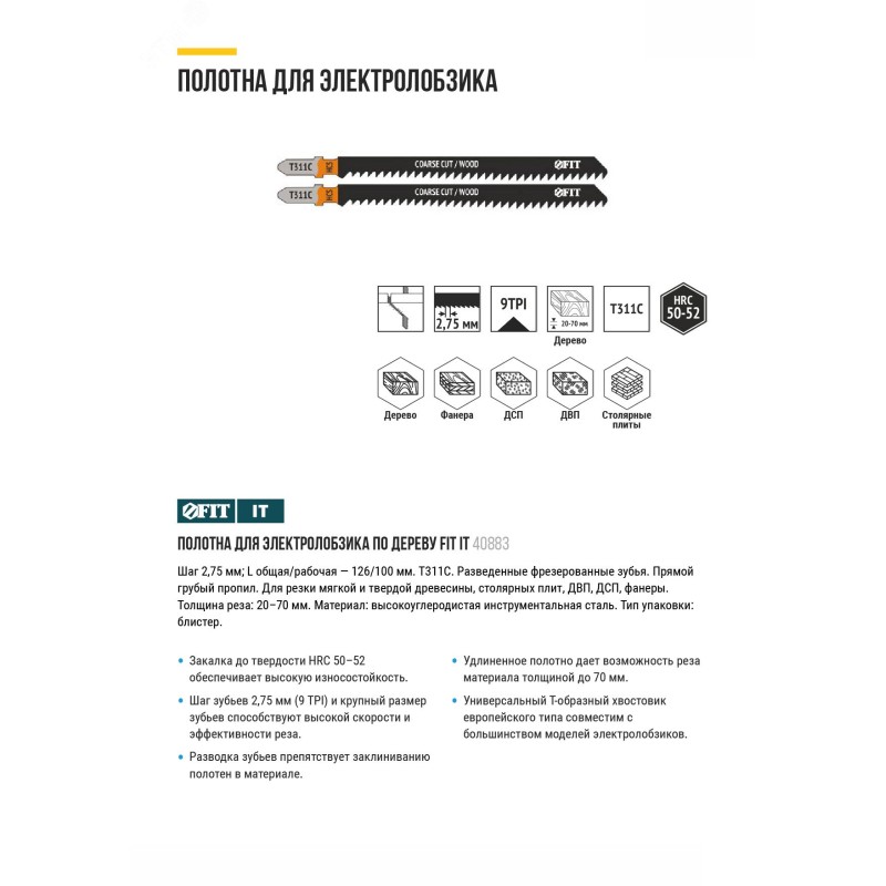 - Преимущества:Закалка до твердости 50-52 hrc обеспечивает высокую износостойкость|Шаг зубьев 2,75 мм (9 tpi) и крупный размер зубьев способствуют высокой скорости и эффективности реза|Удлиненное полотно дает возможность реза материала толщиной до 70 мм|Разводка зубьев препятствует заклиниванию полотен в материале|Универсальный т-образный хвостовик европейского типа совместим с большинством моделей электролобзиков