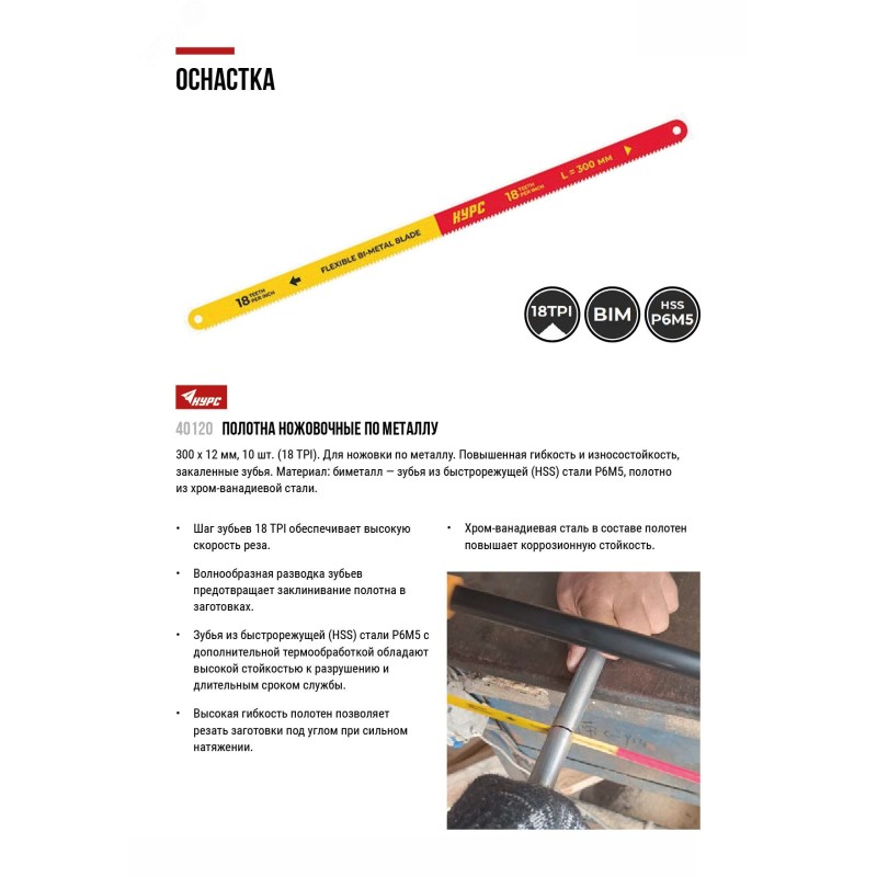 - Преимущества:Волнообразная разводка зубьев предотвращает заклинивание полотна|Шаг зубьев 18 tpi обеспечивает высокую скорость реза|Зубья из быстрорежущей (hss) сталь р6м5 с дополнительной термообработкой обладают высокой стойкостью к разрушению и длительным сроком службы|Высокая гибкость полотен позволяет резать заготовки под углом при сильном натяжении|Хром-ванадиевая сталь основы полотна обеспечивает высокую прочность и коррозионную стойкость