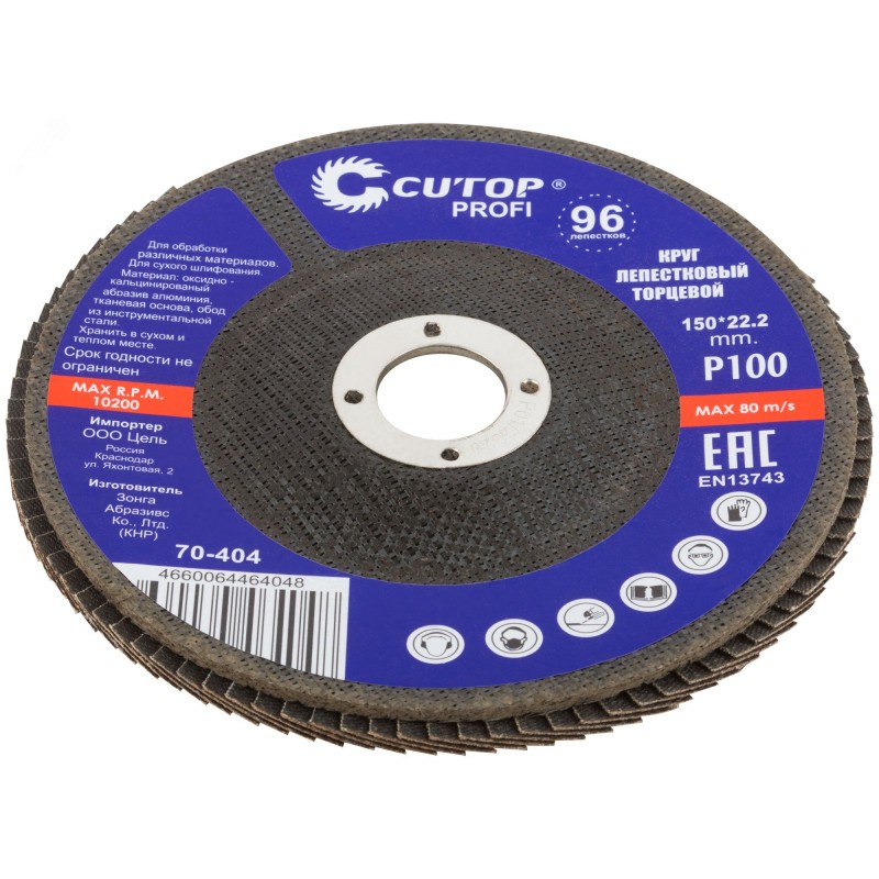При изготовлении используется высококачественный гибкий абразивный материал состоящий из тканевой основы на которую нанесен слой кальцинированного оксида алюминия. Данный абразив имеет более твердые частицы, чем обычный оксид алюминия - Корунд, что позволяет увеличить скорость обрабатываемой поверхности до пяти раз. Наполняемость диска составляет до 96 лепестков с углом наклона 10 градусов, что позволяет увеличить КПД круга и его стойкость к износу в несколько раз. Предназначен для обработки металла и нержавеющей стали. Для углошлифовальных машин. Посадочный диаметр 22,2 мм.