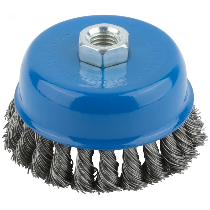 Тип 'чашка'. Для УШМ. Для очистки поверхностей от краски и ржавчины. Гайка М14. Витая проволока. Материал - инструментальная сталь. Упаковка - картонная коробка.