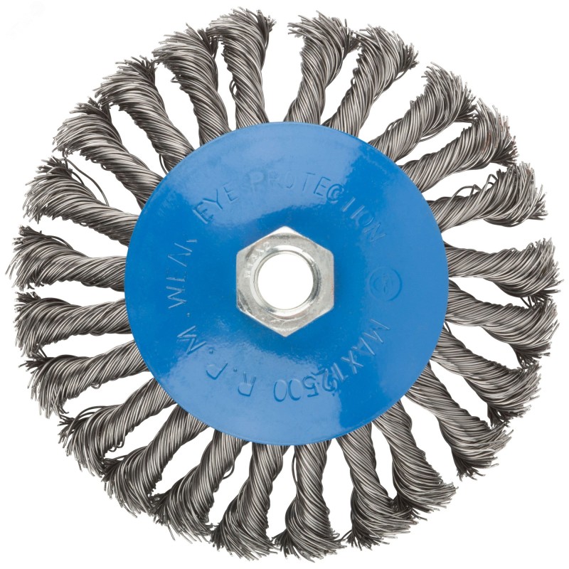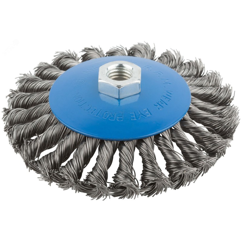 Корщетка-насадка для УШМ MOS предназначена для обработки дерева и металла, снятия краски. Стальная витая проволока обеспечивает высокую скорость и эффективность работы. Тип колесо с наклоном наиболее эффективен при обработке стыков, углов, пазов и различных труднодоступных мест. Порошковое покрытие корпуса предотвращает коррозию. Гайка с резьбой М14 обеспечивает прочную фиксацию на УШМ.