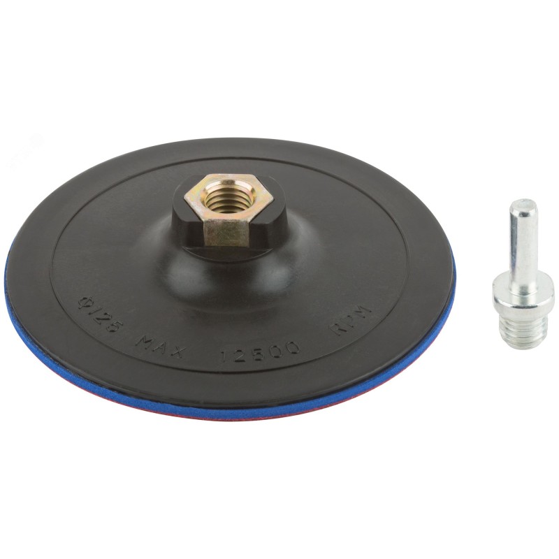 С липучкой. Используется со шлифовальными и полировальными кругами. Гайка М14 для установки на шлифовальные и отрезные машины. В комплекте переходник со штифтом для крепления на дрель. Материал - инструментальная сталь, пластик, подложка из ЭВА.