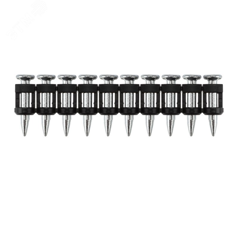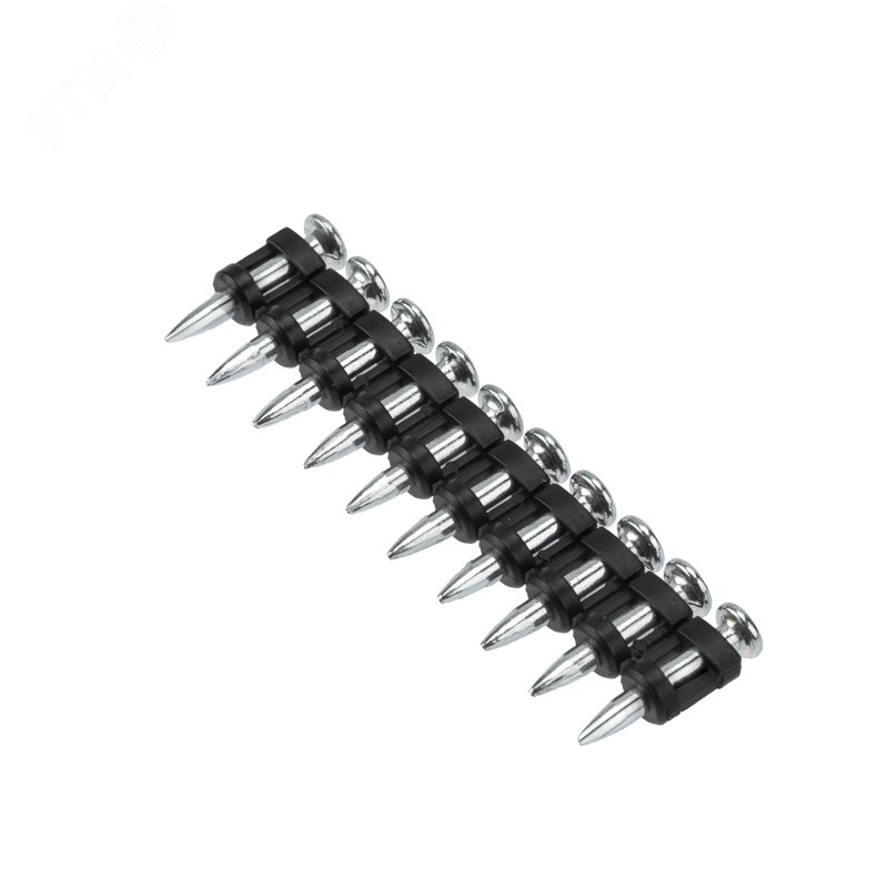 - Преимущества:Высокоуглеродистая сталь устойчива к износу и нагрузкам|Гвозди диаметром 3 мм и твердостью 59 HRC легко пробивают бетон|Подходят также для работы с кирпичом и металлом|Крепеж не ослабнет и не выпадет со временем благодаря улучшенной форме дюбелей