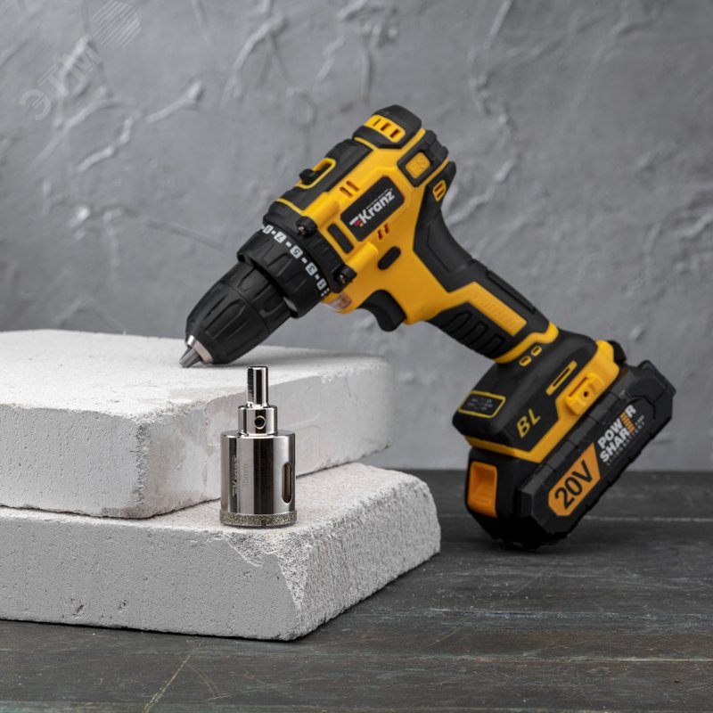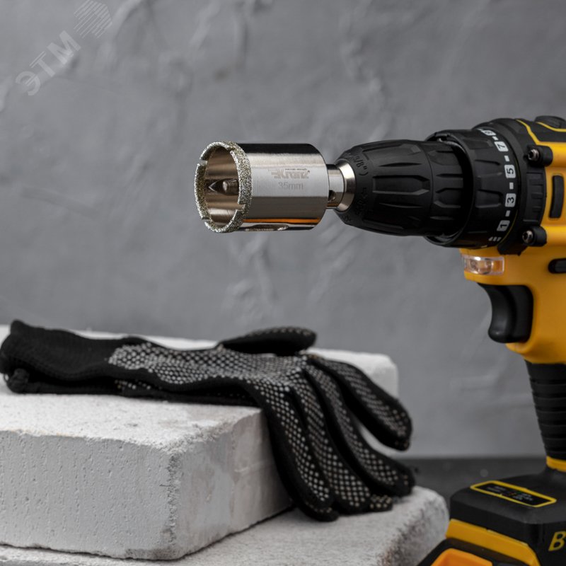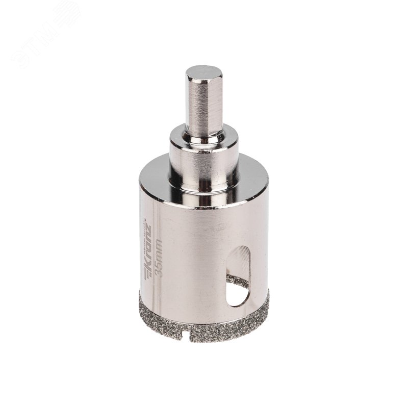 - Преимущества:Равномерное распределение алмазов по режущей кромке обеспечивает аккуратное сверление материала без трещин и сколов|Большой ресурс благодаря высокой статической и динамической прочности алмазов|Центровочное сверло для больше точности положения коронки|Высота алмазного слоя 6 мм для высокой производительности