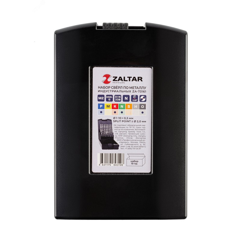 - Дополнительная информация:количество в наборе - 19 предметов|технический стандарт - DIN 338|материал - HSS-G|тип сверла - N|диаметр сверла, мм - 1.0 - 10.0|глубина реза - 5xD|угол заточки - 118 градусов|угол спирали - 25-30 градусов|тип хвостовика - цилиндрический|тип заточки - DIN1412-C - крестообразная подточка перемычки, начиная с диаметра 2 мм