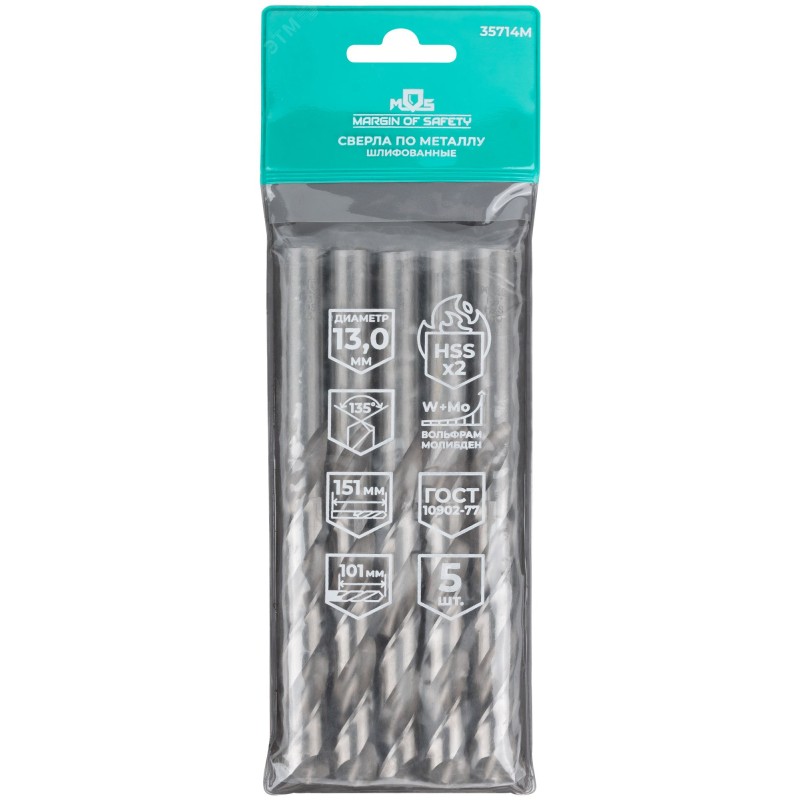 Сверла по металлу MOS предназначены для сверления стали, чугуна, тонкого алюминия, пластика и др. Подходят как профессионалам, так и домашним мастера! Сверла изготовлены качественным методом производства — полная вышлифовка (Fully Ground), что позволило повысить точность сверления и добиться максимально эффективного отвода стружки. При производстве используется высококачественная быстрорежущая сталь с повышенным содержанием вольфрама, молибдена и ванадия, что значительно увеличивает ресурс и прочность сверл. Благодаря профессиональному углу заточки 135 градусов можно сверлить различные материалы без предварительного кернения. Режущие части имеют повышенную твердость HRC 61–64. Сверла хорошо держат заточку, рассчитаны на интенсивную эксплуатацию и высокие нагрузки. Соответствуют ГОСТу 10902-77 и европейскому стандарту DIN338.