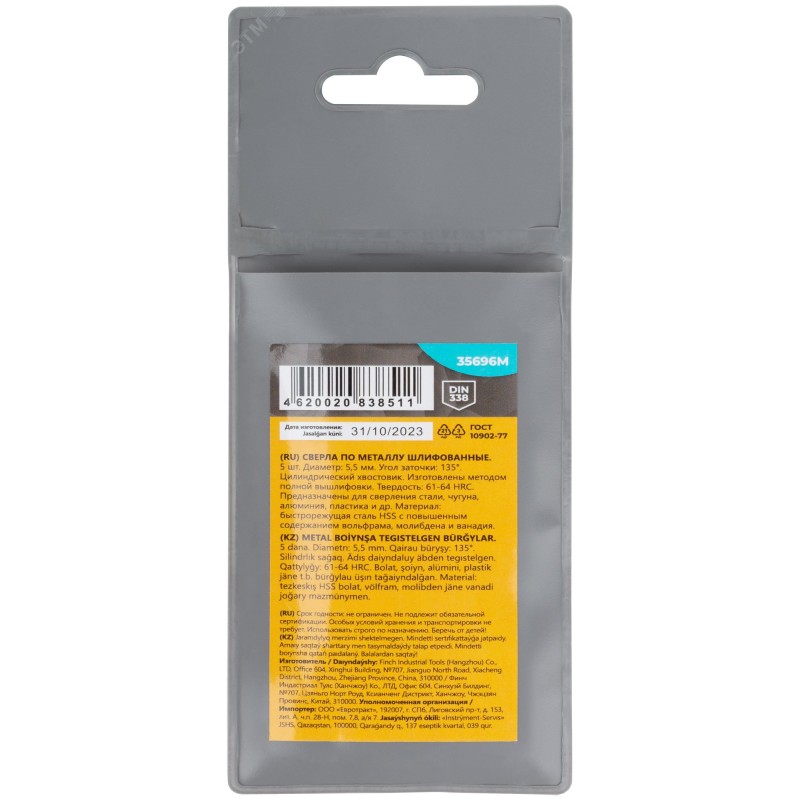 - Тип изделия:Сверло по металлу