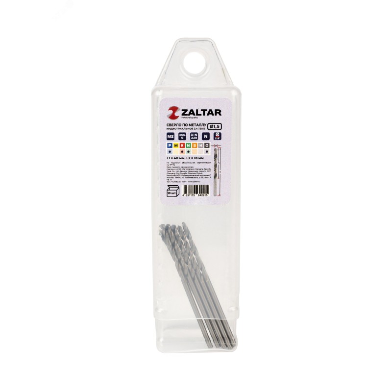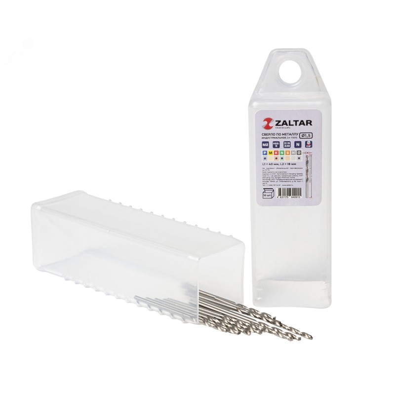 количество в наборе, шт - 10|технический стандарт - DIN 338|материал - HSS-G|тип сверла - N|диаметр сверла, мм - 1.5|рабочая длина, мм - 18|длина, мм - 40|глубина реза - 5xD|угол заточки - 118 градусов|угол спирали - 25-30 градусов|тип хвостовика - цилиндрический