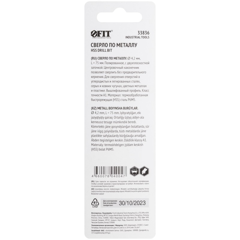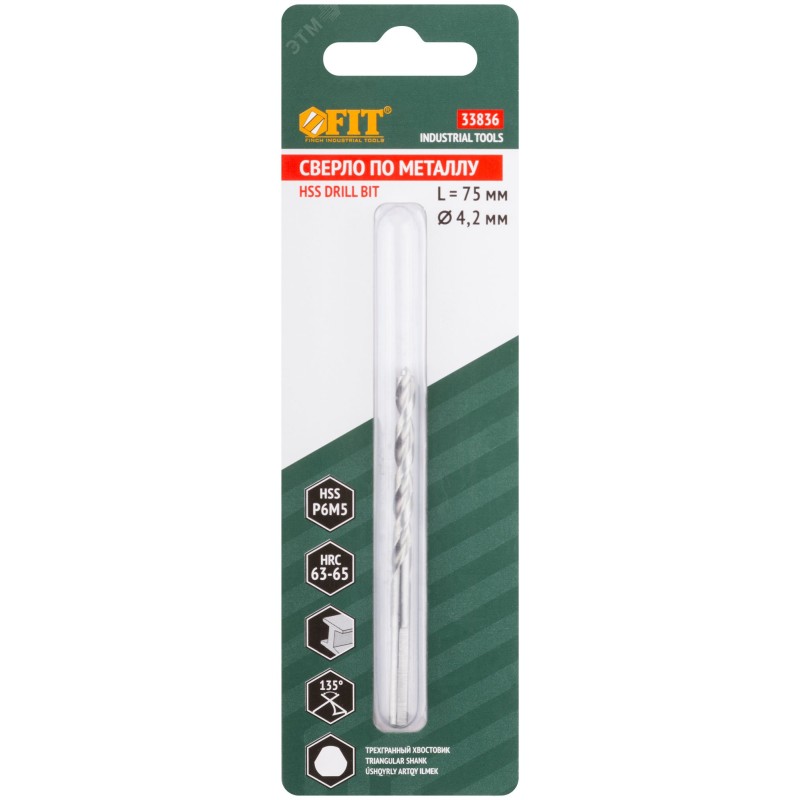Сверла по металлу FIT IT предназначены для сверления отверстий в углеродистых и легированных сталях, серых и ковких чугунах, цветных металлах и пластике. Центровочный наконечник с крестообразной подточкой обеспечивает возможность сверления без предварительного кернения. Режущие усилия распределяются равномерно за счет угла заточки 135 градусов. Сверла имеют высший класс точности А1 и высверливают отверстия с точным диаметром. Сверла изготавливаются методом вышлифовки профиля, что повышает плавность сверления и чистоту готовых отверстий. Форма спирали соответствует стандарту DIN 338 и способствует эффективному удалению стружки во время работы.