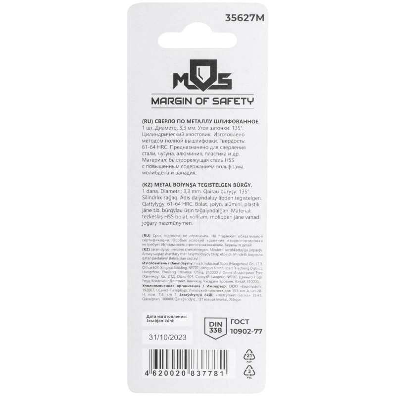 - Тип изделия:Сверло по металлу