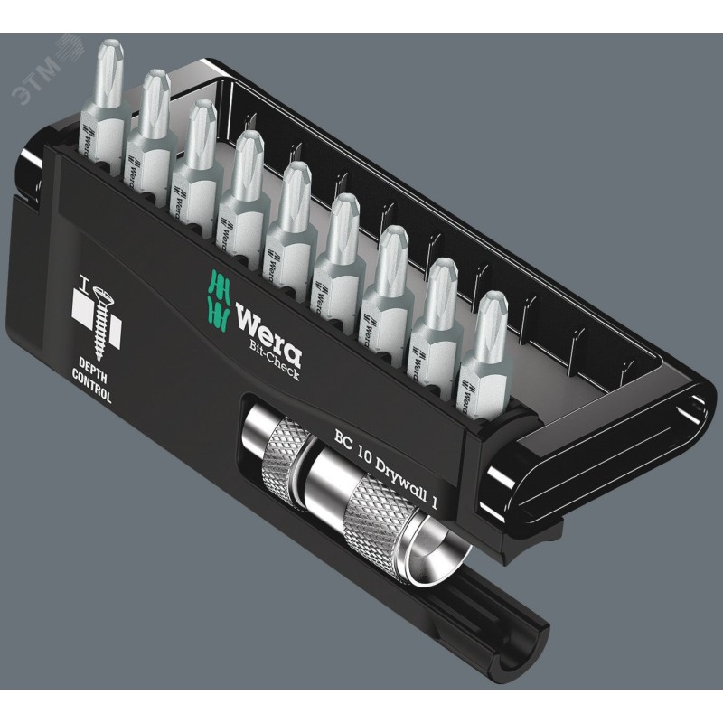 - Преимущества:Многокомпонентный футляр Bit-Check с возможностью вертикального размещения|Высококачественный ограничитель длины из алюминия с плавной регулировкой|Утапливание головки шурупа заподлицо|Биты с адаптированным наконечником для работ по гипсокартону