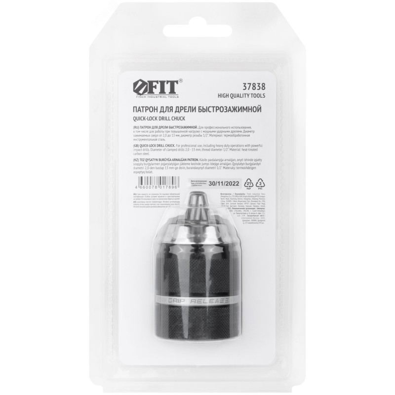 Патрон быстрозажимной трехкулачковый FIT IT используется с ручными и электрическими дрелями в режиме безударного и ударного сверления. Предназначен для зажима оснастки. Позволяет переставлять сменный инструмент без специального ключа. Цельнометаллическая конструкция обеспечивает износостойкость и долговечность патрона. Патрон может использоваться для работ при повышенной нагрузке с мощными ударными дрелями.