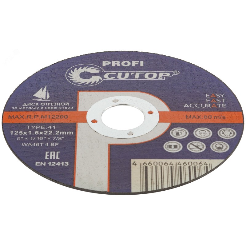 Диск отрезной по металлу и нержавеющей стали Cutop Profi используются с УШМ для резки сталей и различных сплавов. Предназначен для профессионального применения. Диск изготовлен на основе монокристаллического электрокорунда, который улучшает КПД диска и позволяет увеличить количество резов в несколько раз.