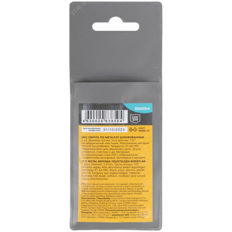 - Тип изделия:Сверло по металлу