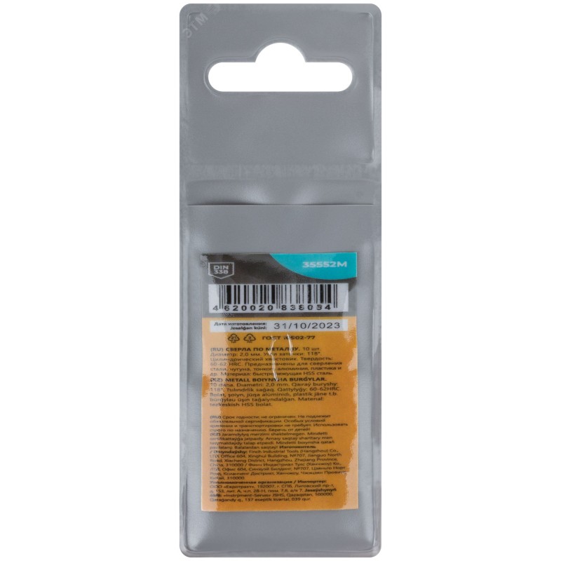 - Тип изделия:Сверло по металлу