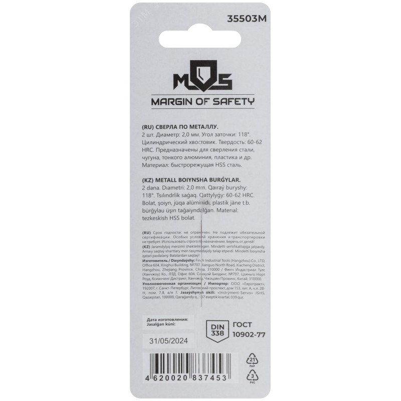 - Тип изделия:Сверло по металлу