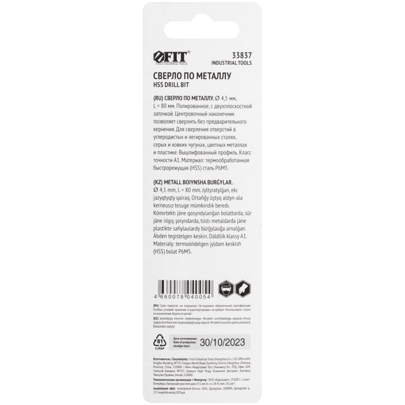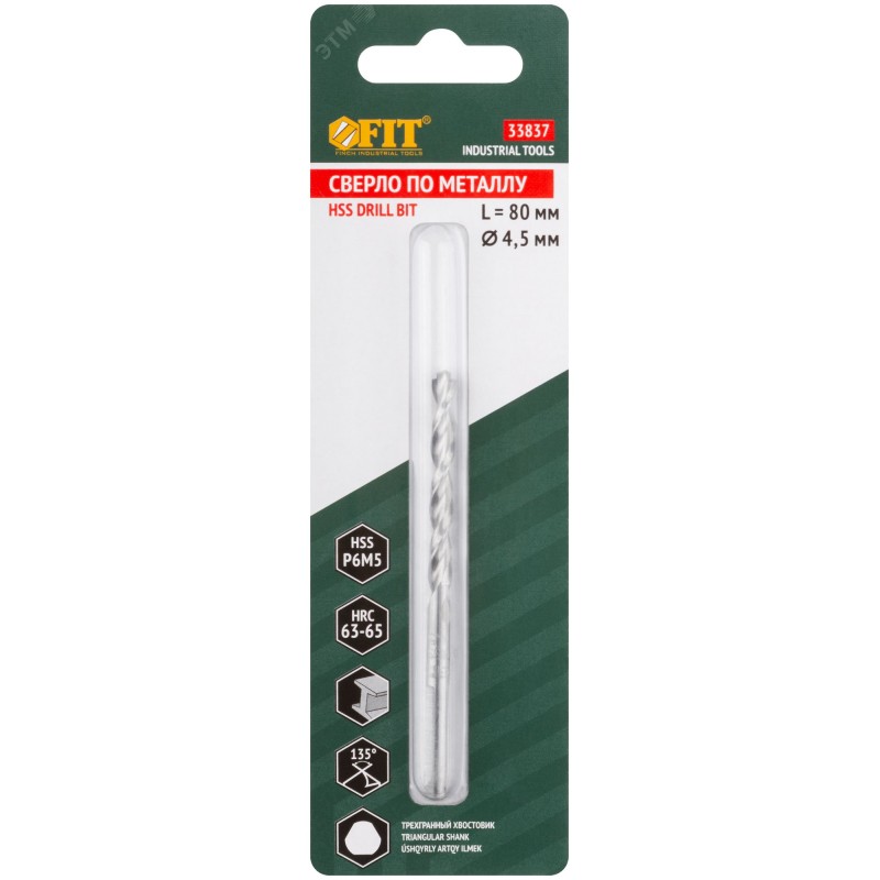 Сверла по металлу FIT IT предназначены для сверления отверстий в углеродистых и легированных сталях, серых и ковких чугунах, цветных металлах и пластике. Центровочный наконечник с крестообразной подточкой обеспечивает возможность сверления без предварительного кернения. Режущие усилия распределяются равномерно за счет угла заточки 135 градусов. Сверла имеют высший класс точности А1 и высверливают отверстия с точным диаметром. Сверла изготавливаются методом вышлифовки профиля, что повышает плавность сверления и чистоту готовых отверстий. Форма спирали соответствует стандарту DIN 338 и способствует эффективному удалению стружки во время работы.