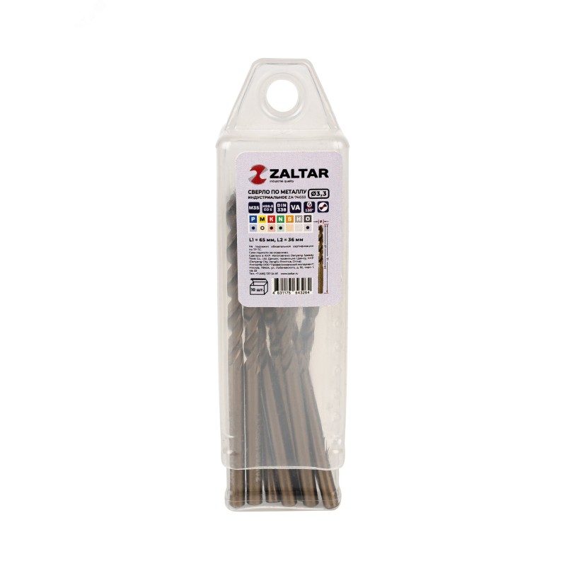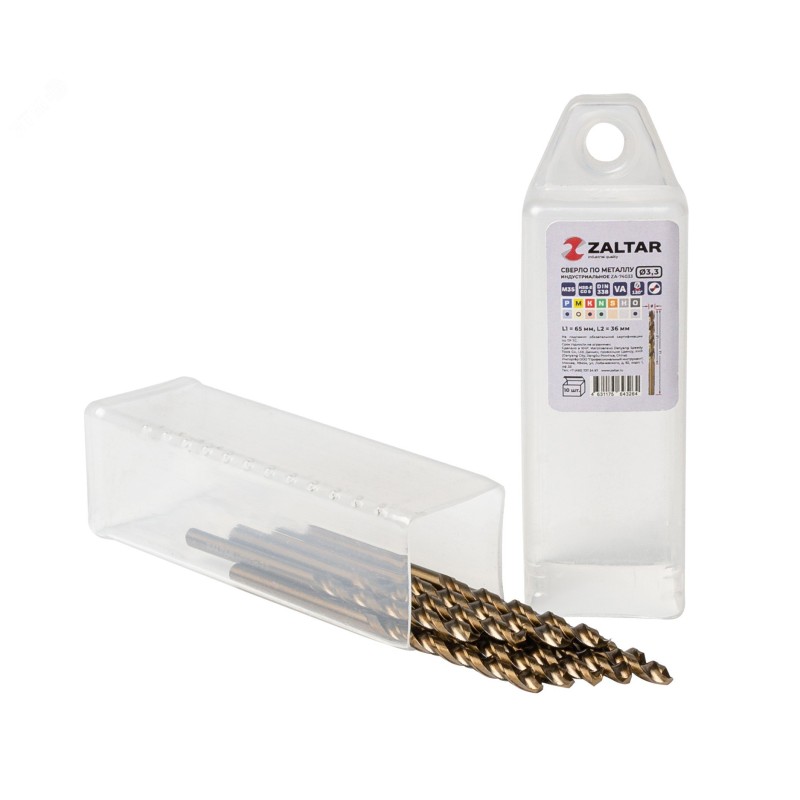количество в наборе, шт - 10|технический стандарт - DIN 338|материал - HSS-E Co5|тип сверла - VA|диаметр сверла, мм - 3.3|рабочая длина, мм - 36|длина, мм - 65|глубина реза - 5xD|угол заточки, градусов - 130|угол спирали, градусов - 36|тип хвостовика - цилиндрический|тип заточки - DIN1412-C - крестообразная подточка перемычки