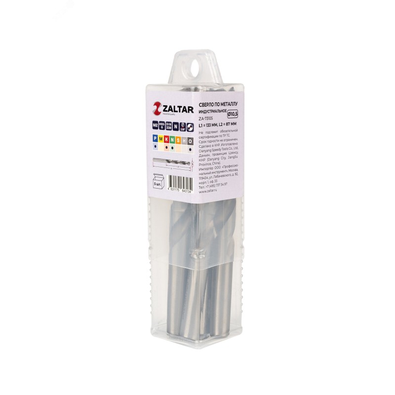 - Дополнительная информация:количество в наборе, шт - 5|технический стандарт - DIN 338|материал - HSS-G|тип сверла - N|диаметр сверла, мм - 10.5|рабочая длина, мм - 87|длина, мм - 133|глубина реза - 5xD|угол заточки - 118 градусов|угол спирали - 25-30 градусов|тип хвостовика - цилиндрический|тип заточки - DIN1412-C - крестообразная подточка перемычки