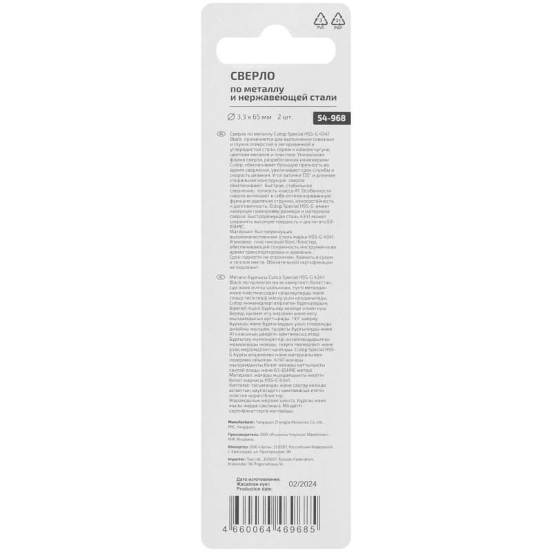 - Тип изделия:Сверло по металлу