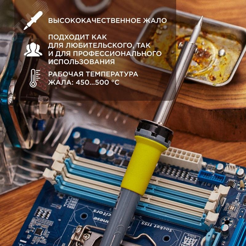 - Преимущества:Подходит для любительского и профессионального использования|Жало легко и быстро заменить|Паяльник оснащен ударопрочной и термостойкой рукояткой|Жало паяльника отличается долговечностью