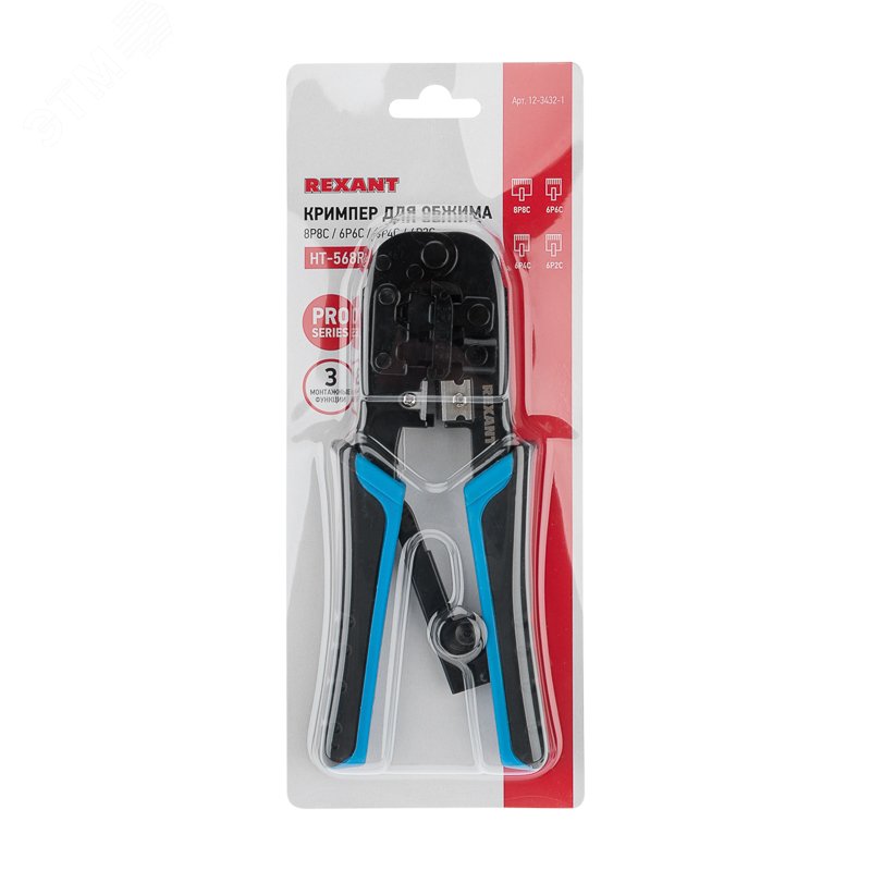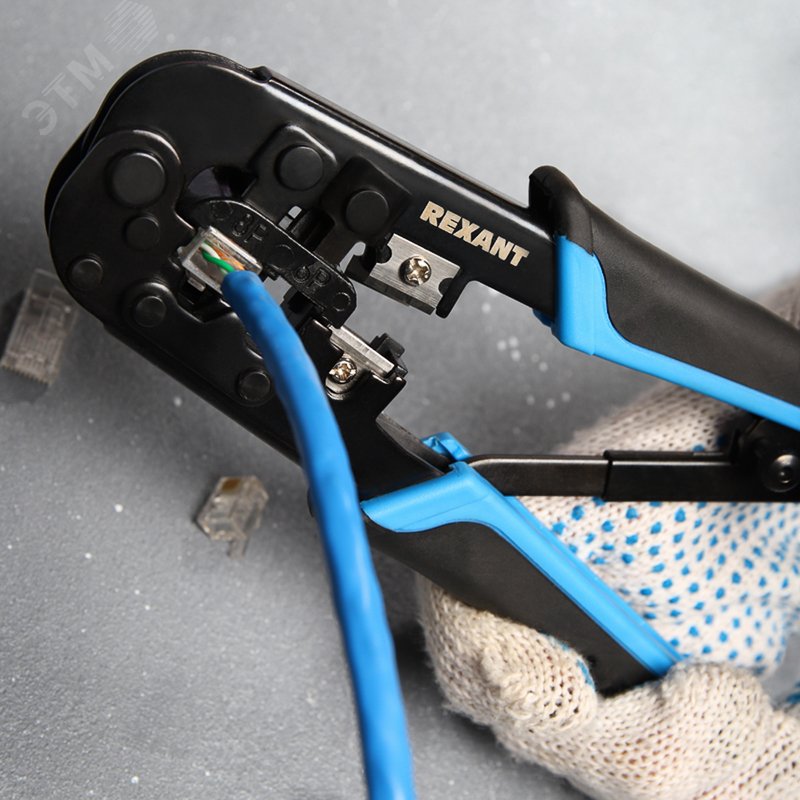 Кримпер REXANT HT-568R ТАЙВАНЬ — универсальный инструмент для обжима Разъемов RJ-45 (8P8C), RJ-12 (6P6C) и RJ-11 (6P4C и 6P2C), а также для снятия изоляции и обрезки проводов. Корпус выполнен из высокопрочной закаленной инструментальной стали с воронением.Возвратный механизм для обеспечения обратного хода рукояток. Храповый механизм предотвращает обратный ход рукояток во время цикла обрезки. Для более удобной работы предусмотрена функция быстрой разблокировки лезвий после обрезки. Высокопрочные режущие сегменты закругленной формы оптимально обхватывают поверхность кабеля и обрезают его без деформаций и скосов. Удобные рукоятки, выполненные из нескользящего плотного синтетического покрытия, сделают работу с инструментом легкой и приятной.