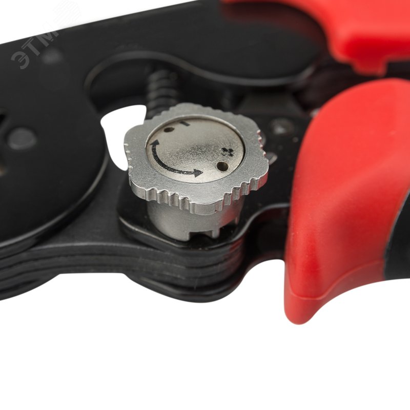 - Преимущества:Регулятор прижимного усилия с шестью положениями обеспечивает надежный обжим|Четырехсегментная матрица равномерно распределяет давление|Возвратный механизм упрощает работу и снижает утомляемость|Храповой механизм предотвращает преждевременное разжатие ручек|Нескользящие рукоятки для удобного захвата инструмента