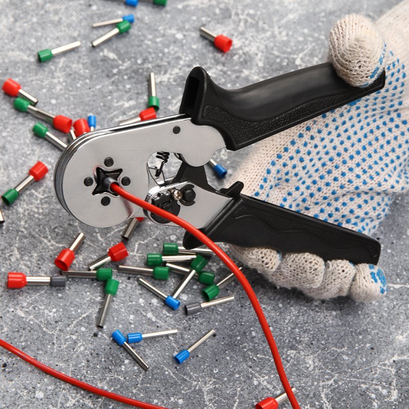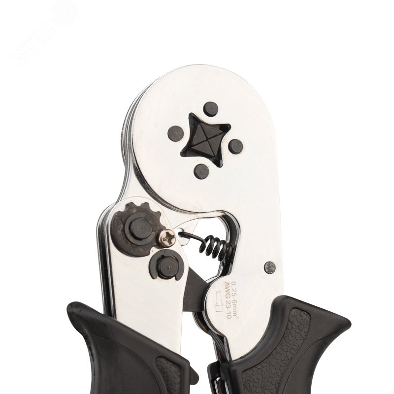 Длительный срок службы – кримпер выполнен из высокопрочной стали с хромированием|Регулятор прижимного усилия с 4-мя положениями обеспечивает надежный обжим без риска повредить проводник|Четырехсегментная матрица равномерно распределяет давление и обеспечивает качественный обжим|Возвратный механизм упрощает работу и снижает утомляемость|Храповой механизм предотвращает преждевременное разжатие ручек и производит качественную опрессовку|Нескользящие рукоятки для удобного захвата инструмента