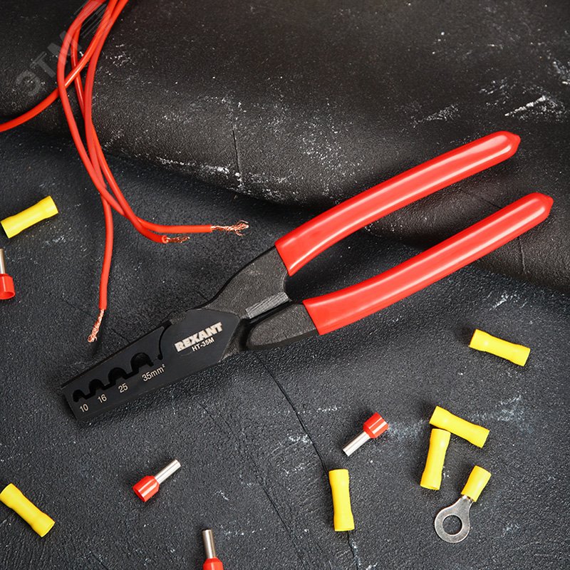 - Преимущества:Клещи изготовлены из закаленной инструментальной стали с воронением|Маркировка на губках для быстрого поиска нужного сечения|Нескользящие рукоятки для удобного захвата инструмента|Оснащены режущей кромкой для быстрой и аккуратной обрезки проводников