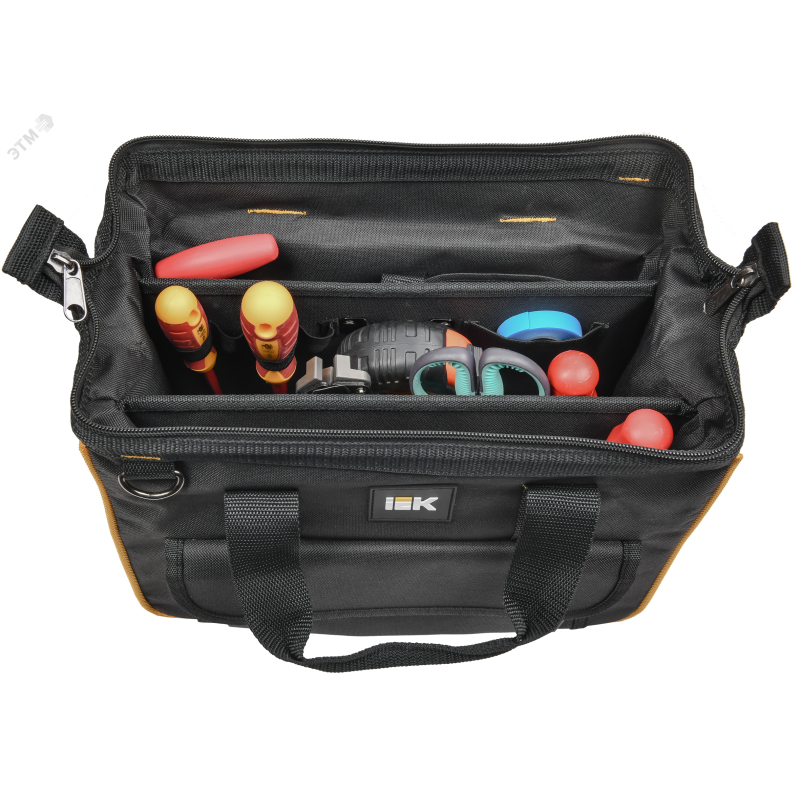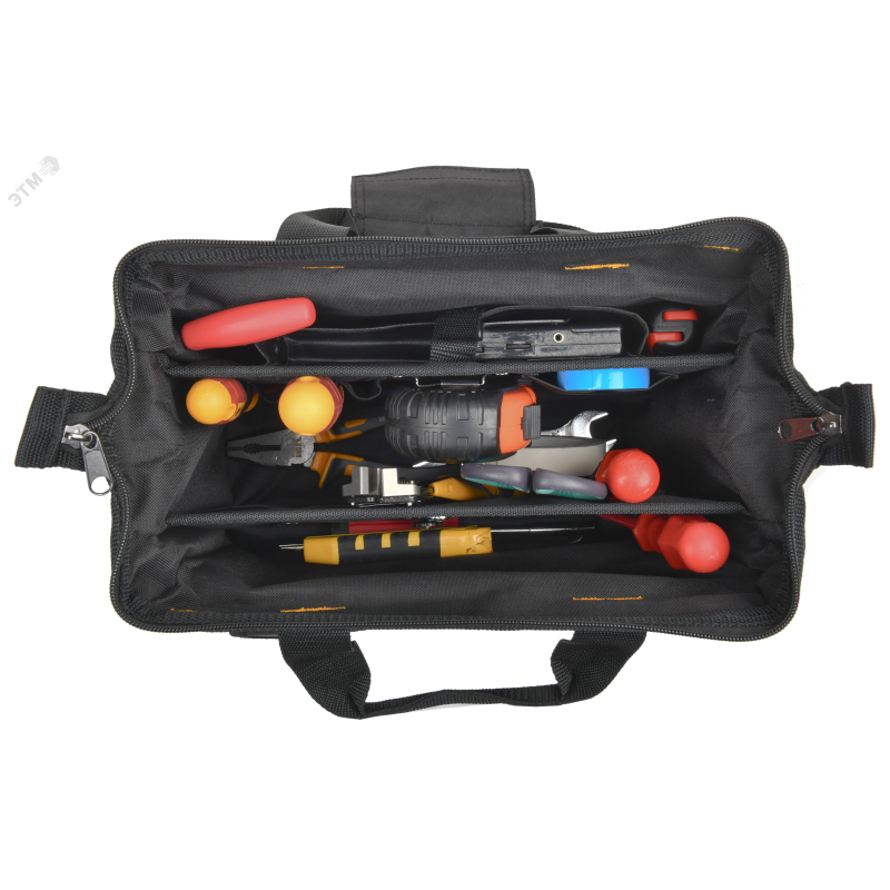 - Преимущества:Материал: полиэстер 600D Оксфорд.|Жесткое дно с резиновыми ножками.|Тканевая ручка и наплечник с анатомической вставкой.|Большой основной отдел с 3 карманами и креплением для рулетки.|Переднее откидное отделение с 16 карманами.|Заднее откидное отделение с 6 карманами, в т.ч. карман для документов.|2 боковых кармана с клапаном.|Усиленная молния с широкими звеньями.