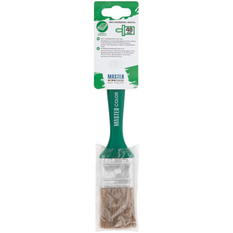 Кисть флейцевая, толщ. 11 мм, 70 ПЭT/30 натур. щетина, нерж.обжим, пласт.ручка, ширина 40 мм