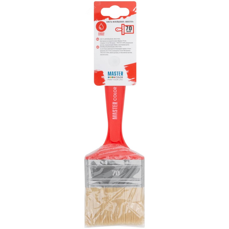Кисть флейцевая, толщ. 16 мм, 70 ПБT/30 светлая натур. щетина, нерж.обжим, пласт. ручка, ширина 70 мм