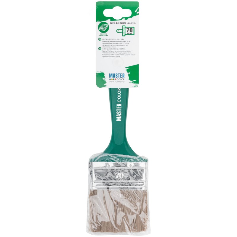 Кисть флейцевая, толщ. 16 мм, 70 ПЭT/30 натур. щетина, нерж.обжим, пласт.ручка, ширина 70 мм