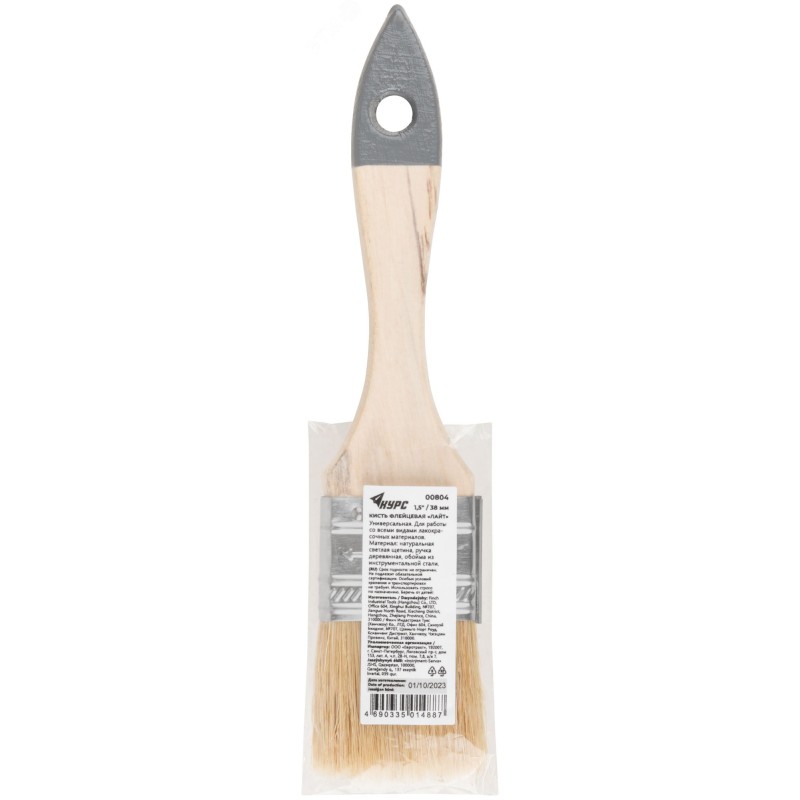 Кисть флейцевая ''Лайт'', натур. cветлая щетина, деревянная ручка 1,5'' (38 мм)